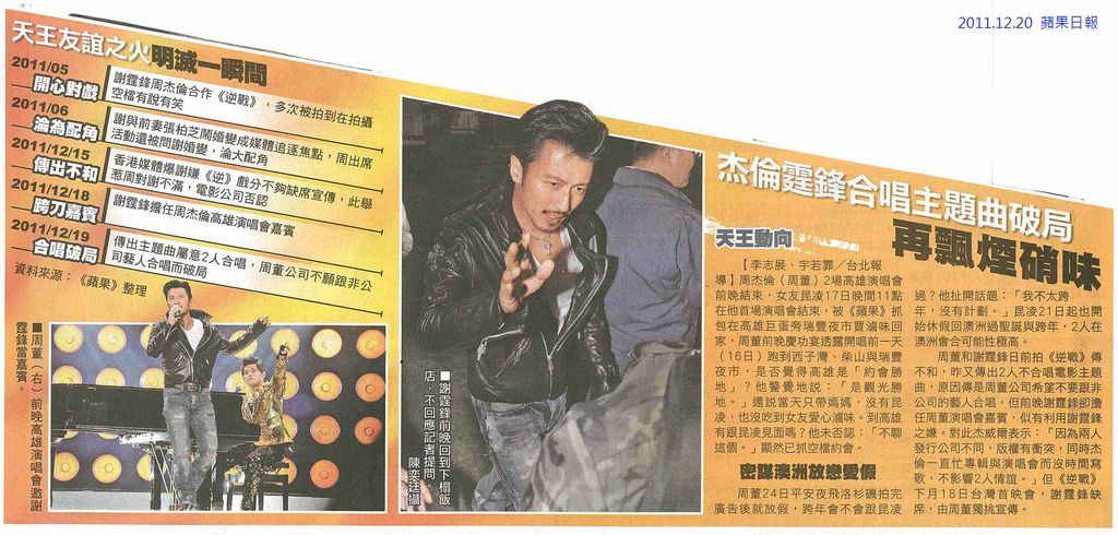 NP露出_2011.12.20_《逆戰》_蘋果日報_杰倫霆鋒合唱主題曲破局.jpg