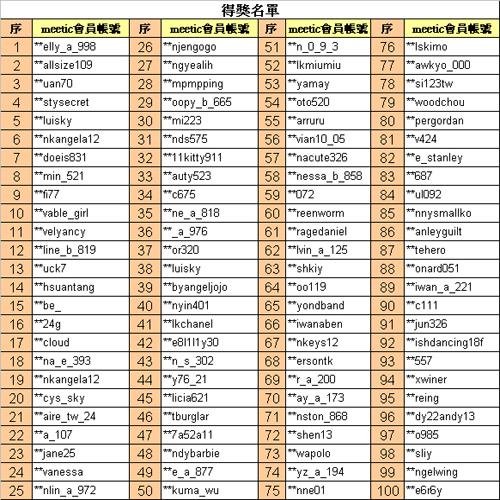 *email為得獎者註冊meetic.tw時的郵件地址
