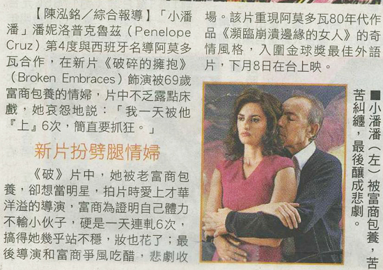 《破碎的擁抱》2009.12.27 蘋果日報新聞見報!!