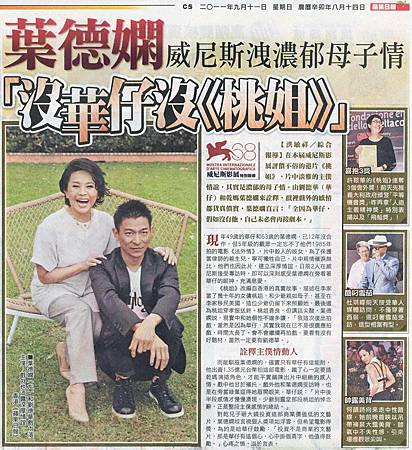 2011.09.11 蘋果日報 - 葉德嫻威尼斯洩濃郁母子情 「沒華仔沒《桃姐》」
