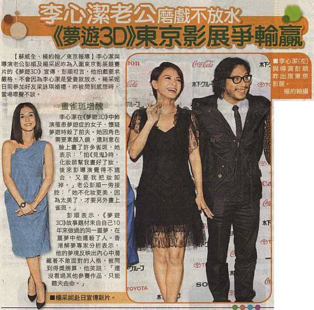 2011.10.25 蘋果日報 - 李心潔老公磨戲不放水《夢遊3D》東京影展爭輸贏