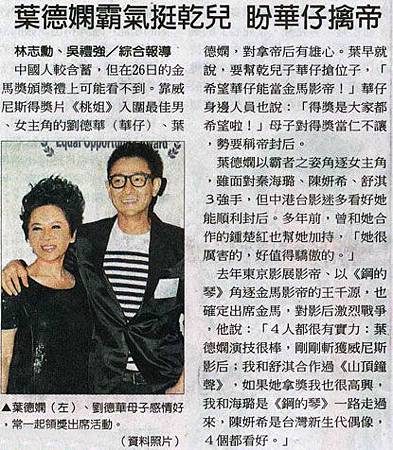 2011.11.17 中國時報 - 葉德嫻霸氣挺乾兒 盼華仔擒帝