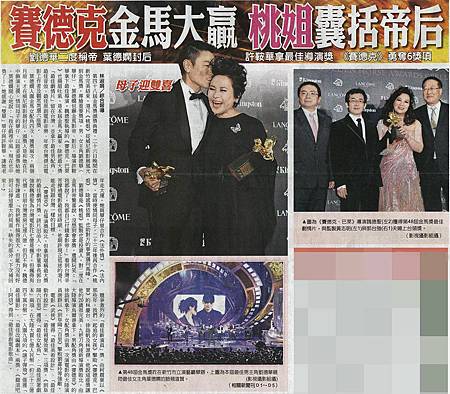 2011.11.27 自由時報 - 《桃姐》榮獲影帝后、導演三大獎