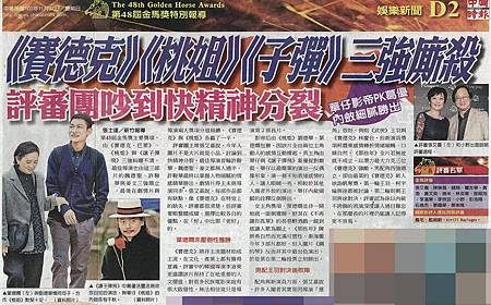 2011.11.27 中國時報 - 《賽德克》《桃姐》《子彈》三強廝殺 評審團吵到快精神分裂