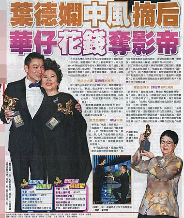 2011.11.27 自由時報 - 葉德嫻中風摘后 華仔花錢奪影帝