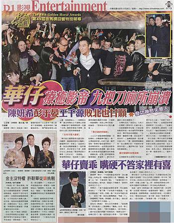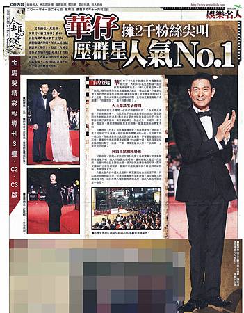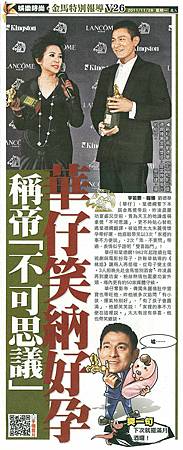 2011.11.28 蘋果日報 - 華仔人氣帥氣稱帝3風光 金馬夜笑納好孕