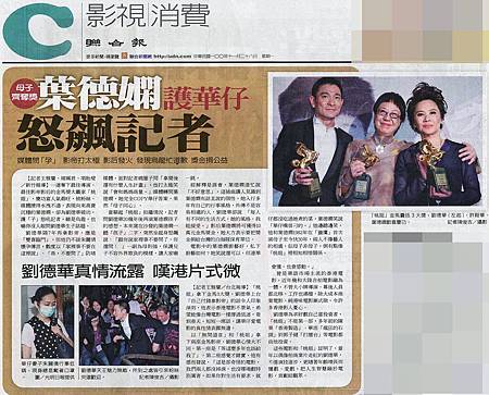 2011.11.28 聯合報 - 母子齊得獎 葉德嫻護華仔 怒飆記者