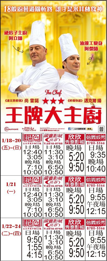 好評不斷票房佳的《王牌大主廚》第二周時刻表來囉~