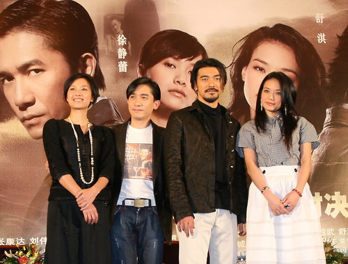 年底華人影壇大片票房對決,由梁朝偉、金城武、舒淇與徐靜蕾合演的「傷城」不甘示弱,日前在北京舉行的首映會上4位主角全部到齊,導演劉偉強、麥兆輝與寰亞影片老闆林建岳也到場,舞台上重量級人物一字排開,增加了不少氣勢。雖然首映前一日舒淇在北京出席某運動名牌旗艦店開幕時,疑似遭人襲胸,她在「傷城」首映會上倒是笑臉迎人,心情未受影響。